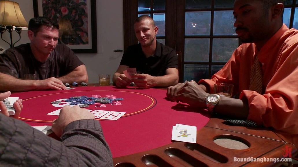 There is a moral to every story, and the moral of this one is simple if you don’t want to get flogged, whipped, and fucked in front of and by all my friends, don’t make a scene in front of my friends! When Krissy Lynn’s playing boyfriend won’t quit playing poker to take her out on a date like he promised she yells at him in front of his friends, somehow thinking it will help her get her way. Instead he sends her upstairs to get “the bag” full of toys and he humiliates her then whores her out to all his buddies. Lots of hardcore double penetration.